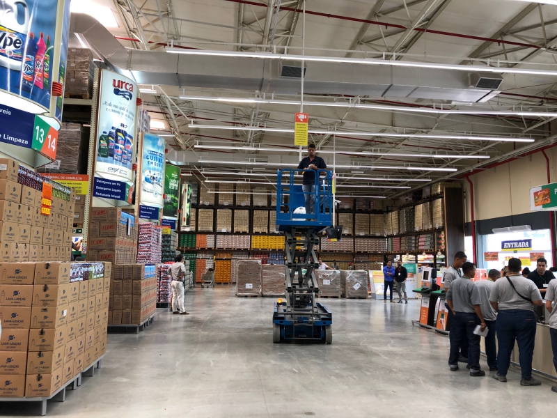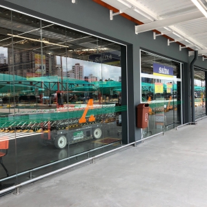 Estrutura: reforço estrutural para adequação ao novo uso com abertura de vãos nos painéis tilt up para instalação dos vidros da fachada e relocação e ampliação das docas