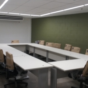 A obra é distribuída em 4 andares, no nível 1 e no nível 2 temos o estacionamento e diversas áreas técnicas, no nível 3 temos o salão de vendas e também as áreas com salas administrativas e por último o nível 4 onde é localizado o depósito, estoque e a retirada de materiais.